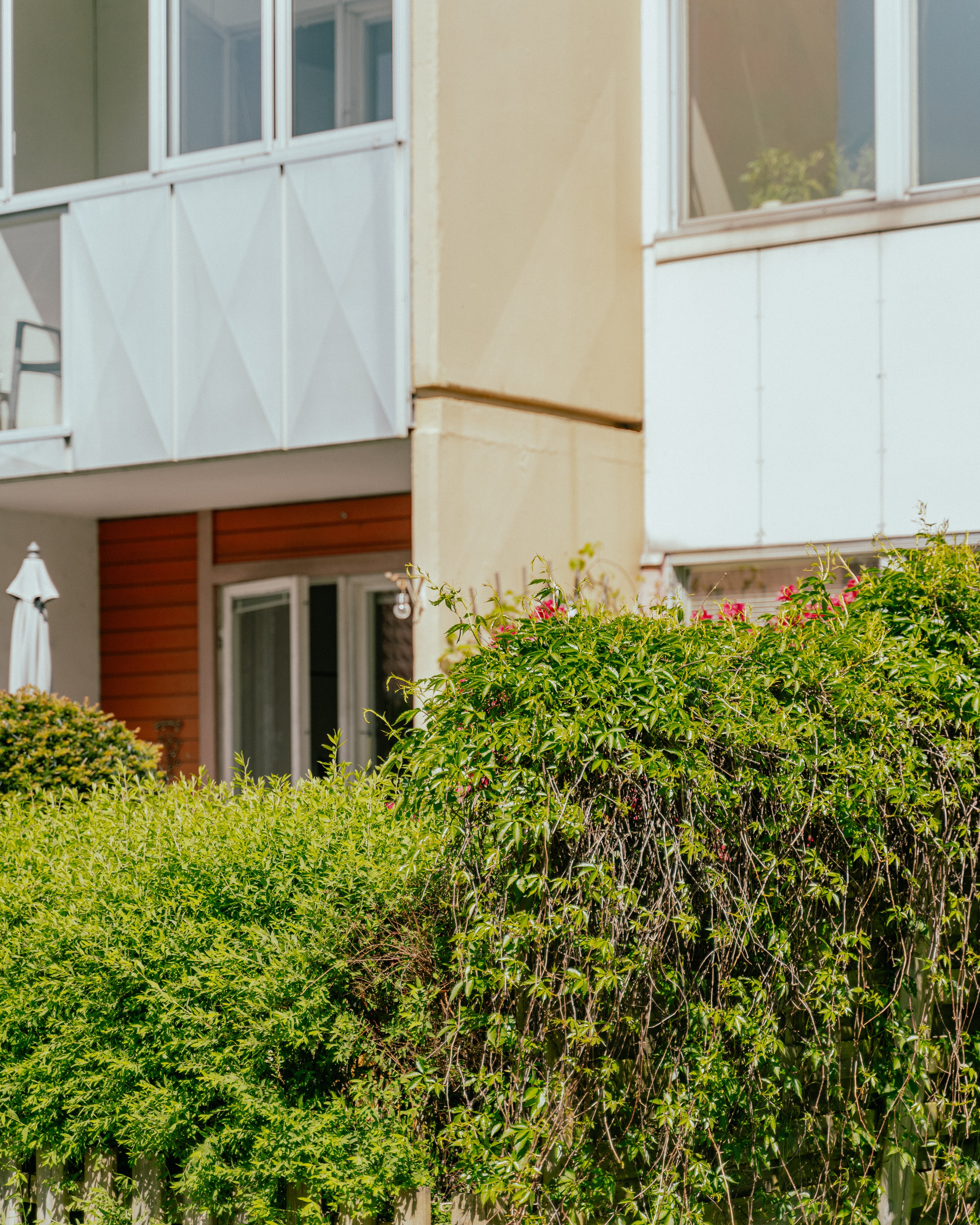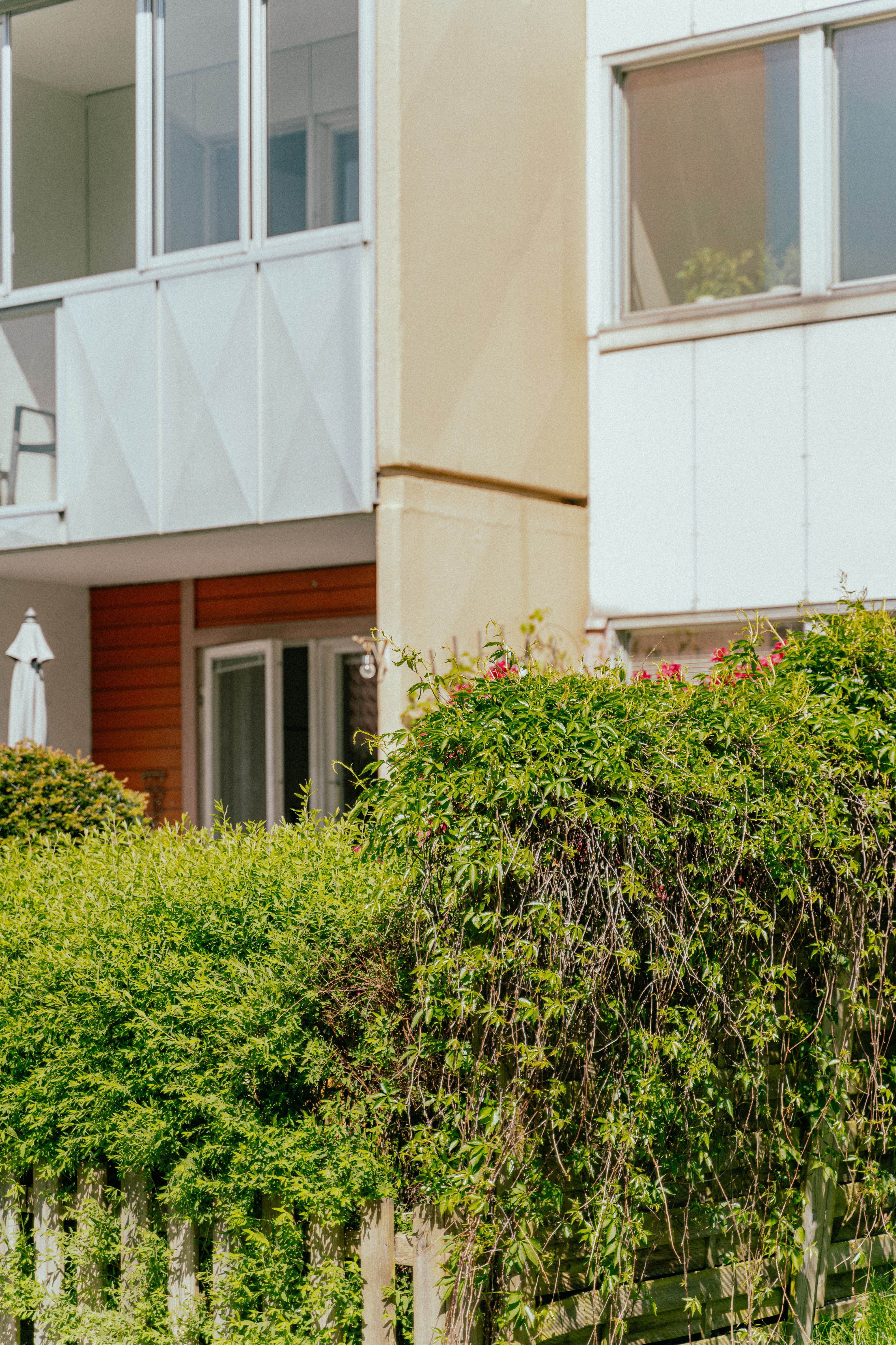 Uppvuxna gårdar och uteplatser – trevåningshus med vardagsservice nära